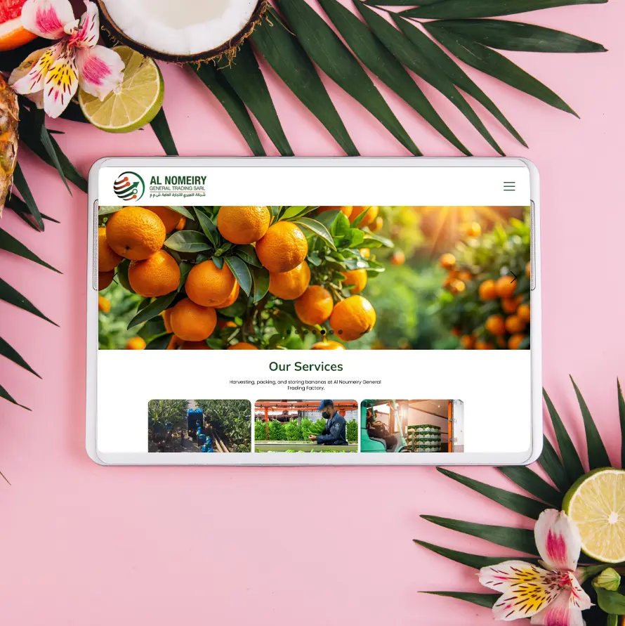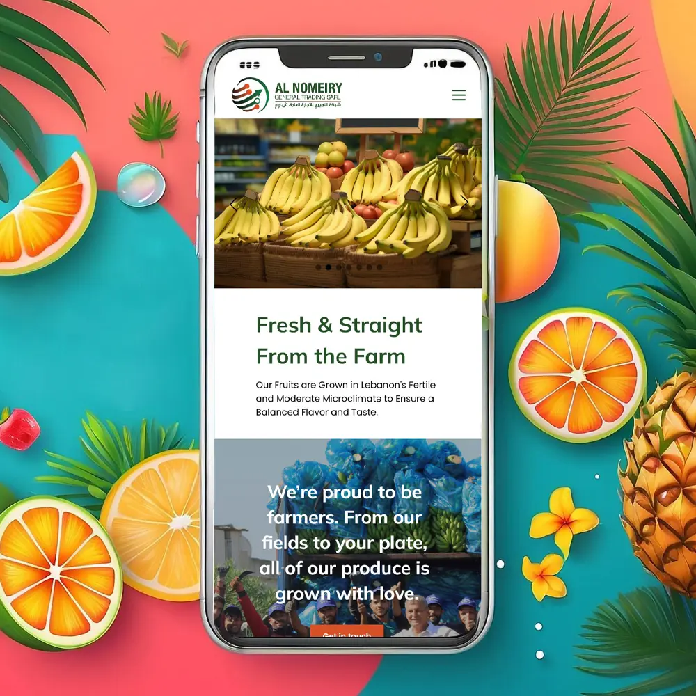 Alnomeiry General Trading SARL is a Lebanon-based company specializing in the production and export of premium bananas and fruits, operating in compliance with ISO and GlobalG.A.P. standards, designed and developed by Fusion Design Agency.